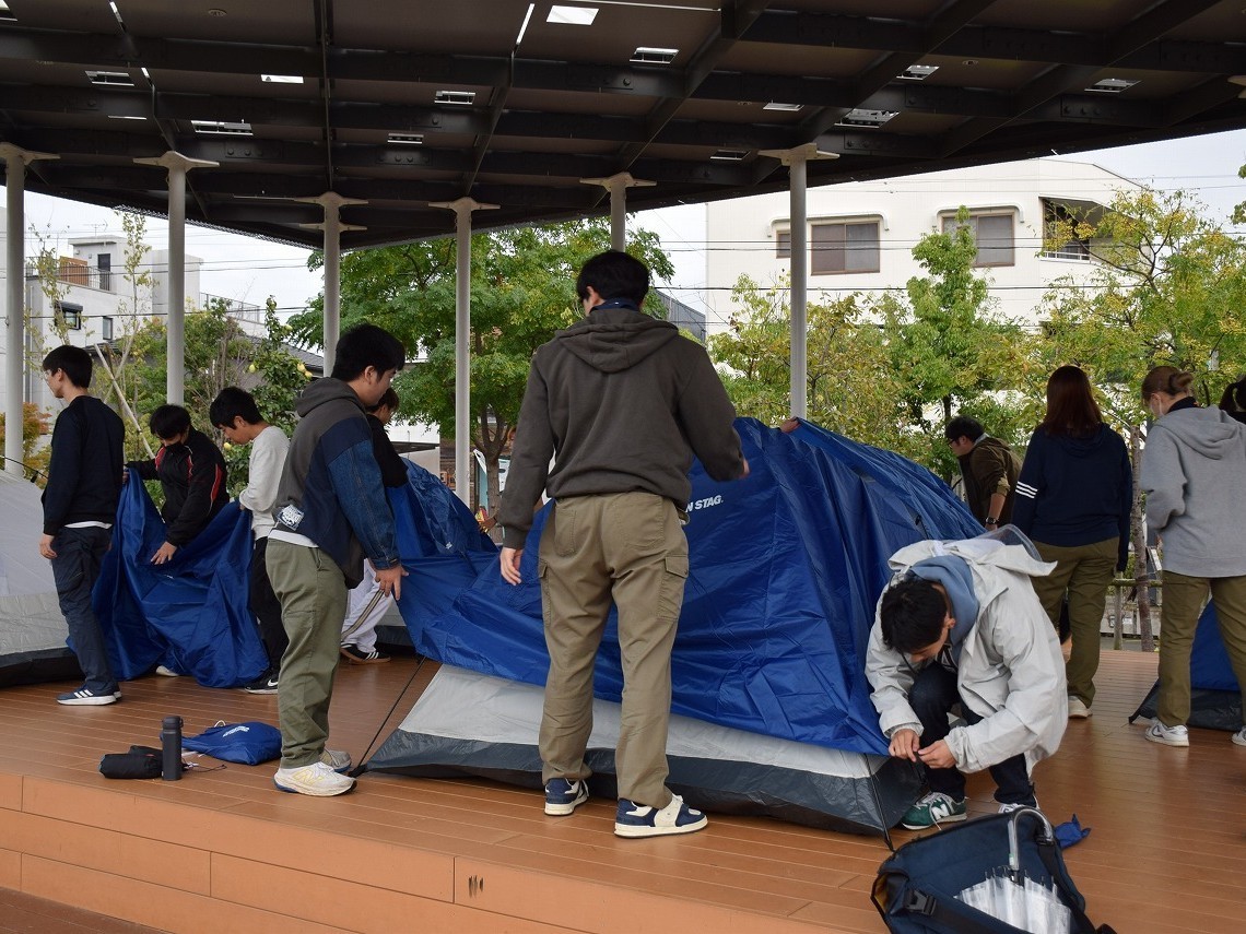 2025年10月25日・26日、防災意識の向上と災害時の対応力を育むことを目的に、岡崎城西高等学校の皆様と籠田公園で「地域防災キャンプ」を実施しました。市役所による防災講話や、地図を使った災害想像ゲーム「DIG」、テント設営や夕食づくり体験を通して、地域の防災力向上を目指します。
